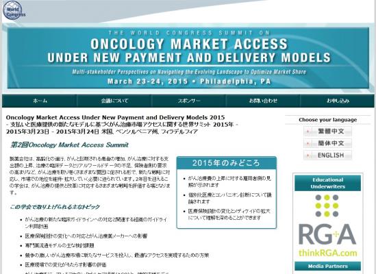 学会:「Oncology Market Access Under New Payment and Delivery Models 2015-支払いと医療提供の新たなモデルに基づくがん治療市場アクセスに関する世界サミット 2015年」