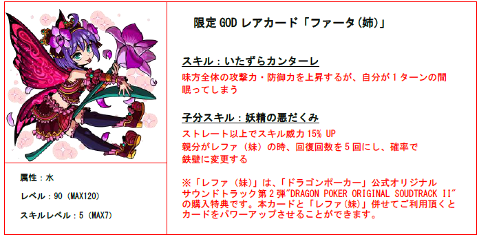 また、購入者特典として限定描き下ろしGOD レアカード「ファータ(姉)」と