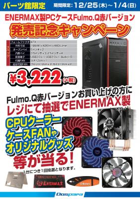 また、これに合わせ、ドスパラパーツ館にて「Fulmo.Q赤バージョン発売記念キャンペーン」を開催いたします。