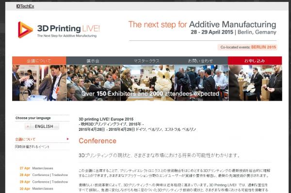 会議:「3D printing LIVE! Europe 2015-欧州3Dプリンティングライブ 2015年」