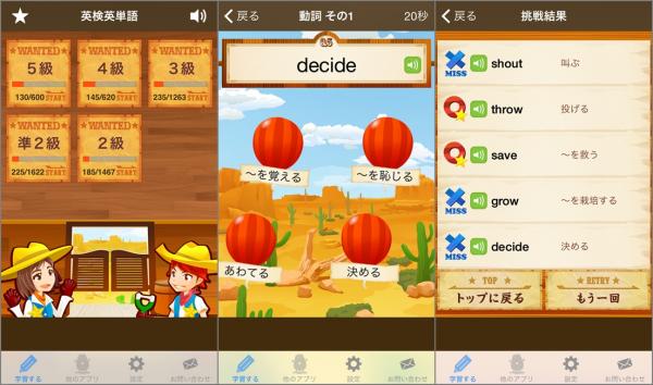 旺文社が独自に選定した英検2級・準2級・3級・4級・5級レベルの単語・熟語を、ゲーム形式で楽しみながら学ぶことができます。