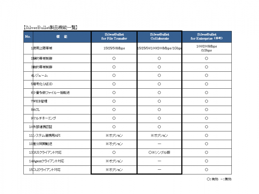 【ご参考:既存製品とSilver Bullet for File Transfer/SilverBullet Cillaborateの機能比較】