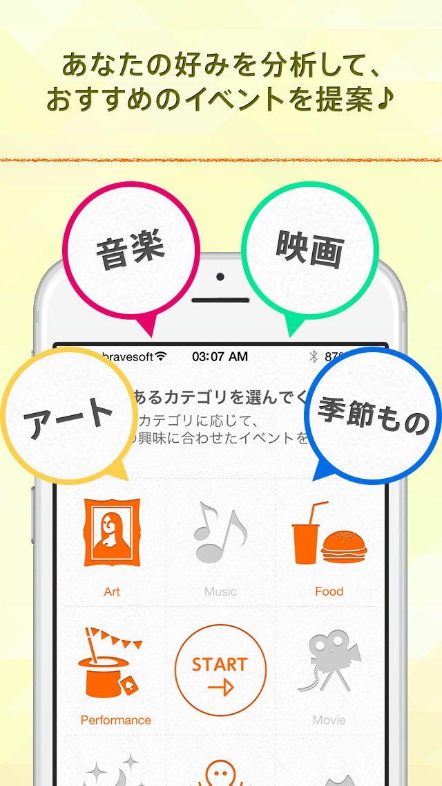 今日開催中のイベントや明日開催予定のイベント、明後日以降開催予定のイベントを分けて一覧で見ることができるので、予定に合わせたイベントが見つかります。また、好みに合わせたイベントを優先してオススメしてくれるので、気になるイベントを簡単に見つけることができます。