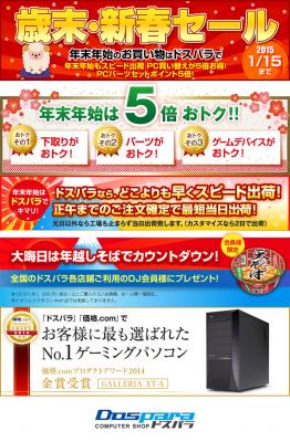 全国21店舗及びウェブ通販のパソコンショップ『ドスパラ』(運営:株式会社ドスパラ)は、2014年12月26日(金)より、