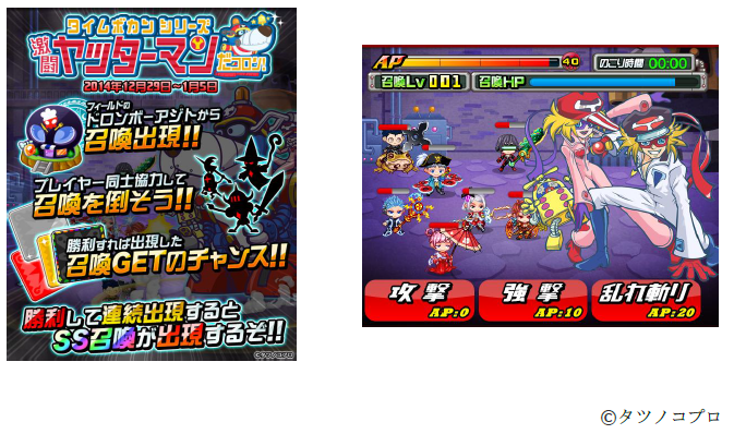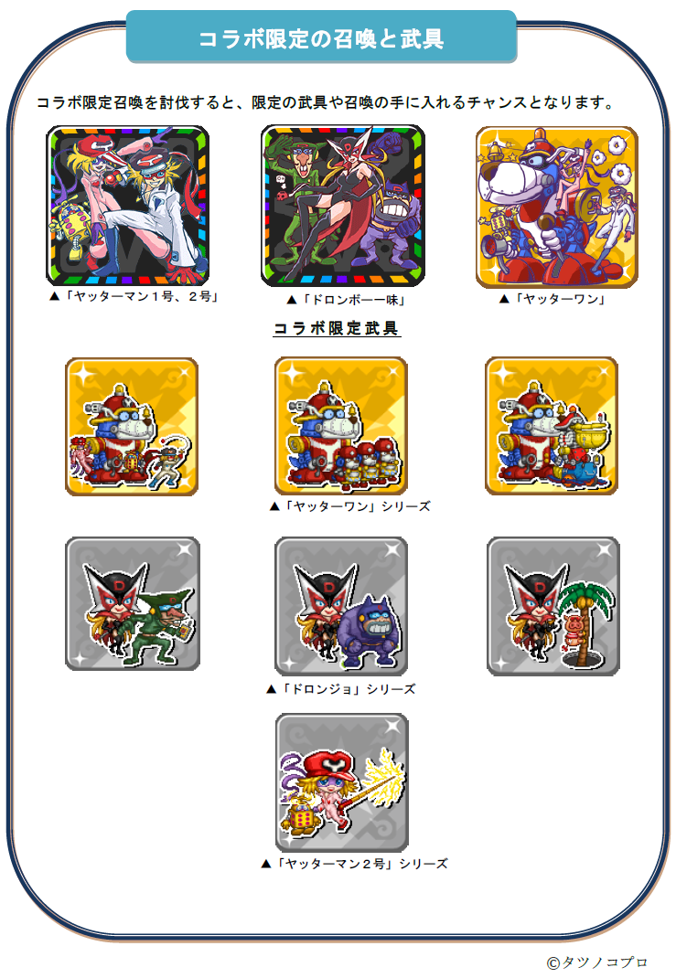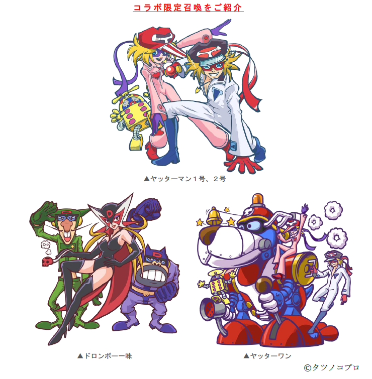 本コラボイベントでは、『ヤッターマン』の「ヤッターマン1号、2号」「ドロンボー一味」