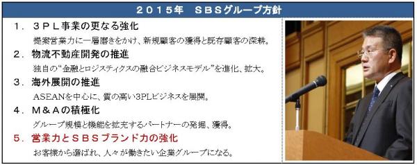 SBSグループは、創業30周年を迎える2017年をゴールとする中期経営計画の必達を掲げ、2015年も邁進いたします。今年もSBSグループへのご支援、ご指導を賜りますよう、よろしくお願い申し上げます。