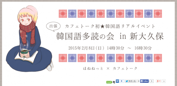 この度、スカイプを使って多数の韓国語レッスンを提供するカフェトークと、良質な韓国語教育や多様な韓国文化の輪を広げるためのネットワークである「ほねねっと」が協力し、「出張・韓国語多読の会 in 新大久保」を開催することとなりました。