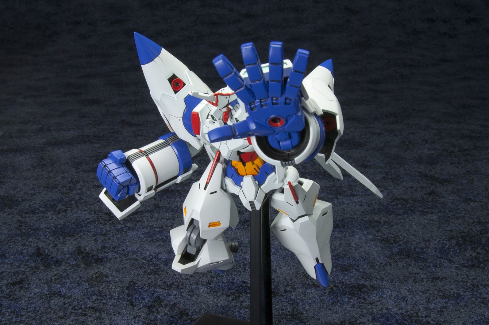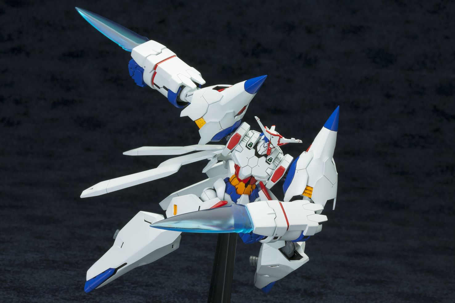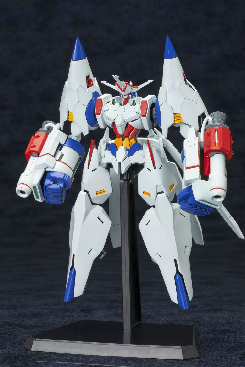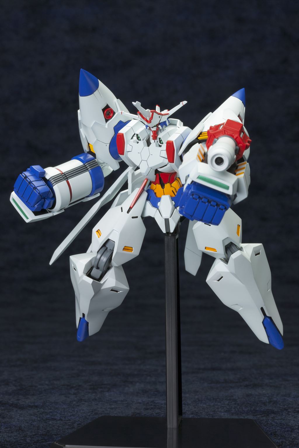 特徴的な表情平手が両手分付属し、腕部キャノン砲展開パーツ、胸部バルカン砲展開パーツが2個ずつ付属します。アースエンジン・インパクターの中枢ユニット「アースエンジン・オーディナリー」も付属し、四肢は軸可動します。最終話ラストバトルで使用した頭部砲を差し替えで再現可能です。また、劇中には登場しなかった特殊ギミック腕部ビームブレード・パーツが2個付属します。専用ベースもついており、様々なアクションポーズができます。
