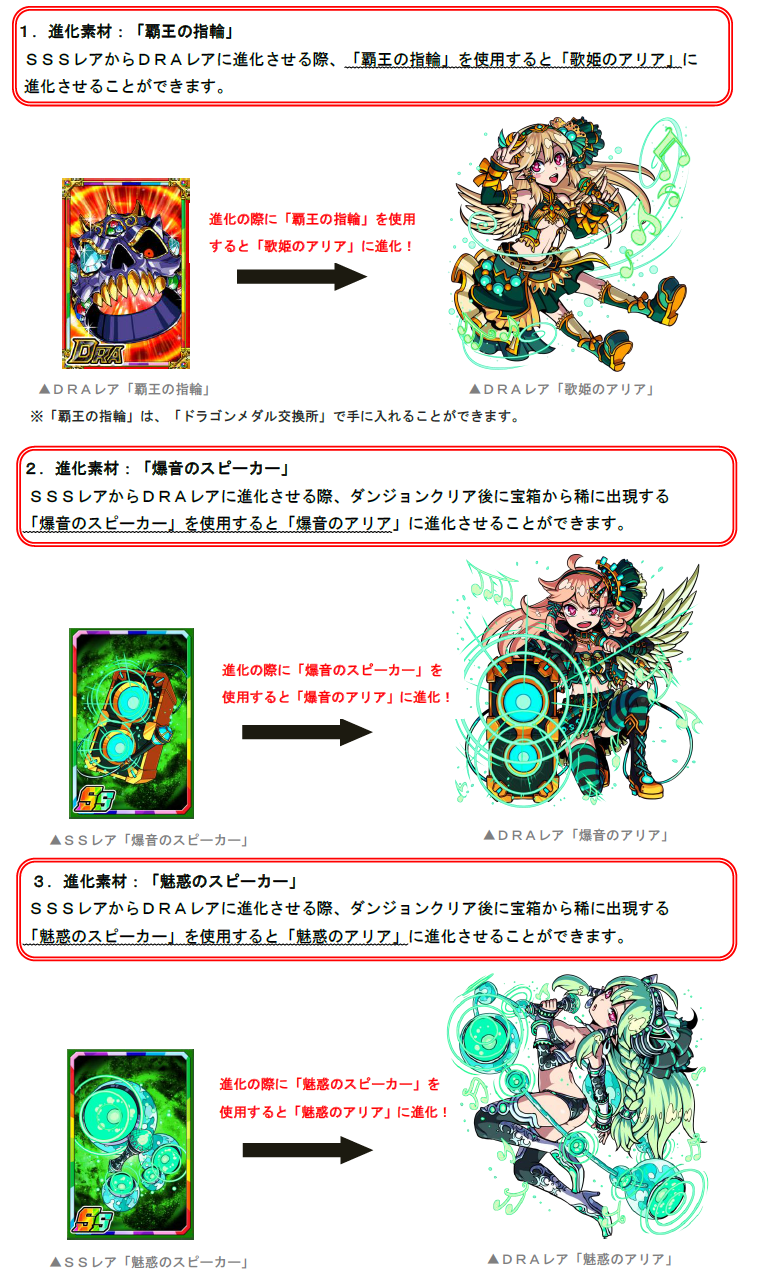 することができます。SSレア「アリア」を最高レアリティDRAレアへ