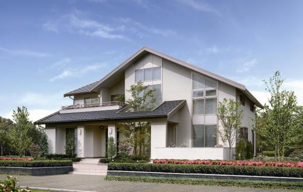 外観はデザインバリエーションとしても人気の高い、和モダンタイプの「翼」のデザインを採用しております。また、内部は大きな吹抜けと、吹き抜け部分に配した窓からたくさんの光が差し込む明るいリビングをはじめ、快適な住空間を演出します。