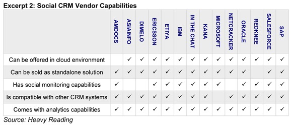 * Profiles of 14 leading vendors that provide social CRM solutions for service providers, ranging from BSS/OSS suppliers to traditional CRM vendors and smaller SaaS players