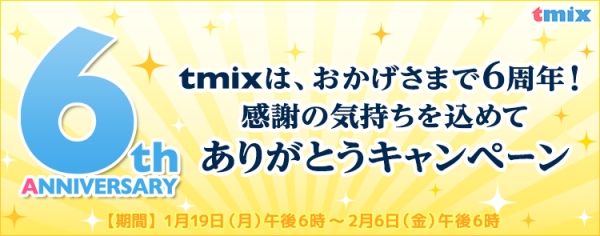 キャンペーン名 :祝!tmix6周年ありがとうキャンペーン