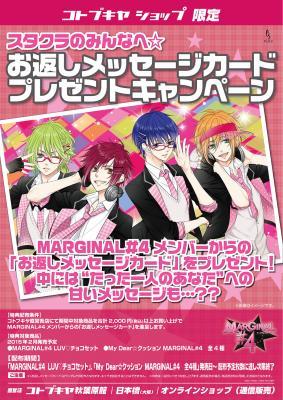 更に、グッズ発売日以降、期間中に対象商品を2,000円(税込)以上お買い上げで、MARGINAL#4メンバーからの「お返しメッセージカート(全4種)」を1枚プレゼントします。