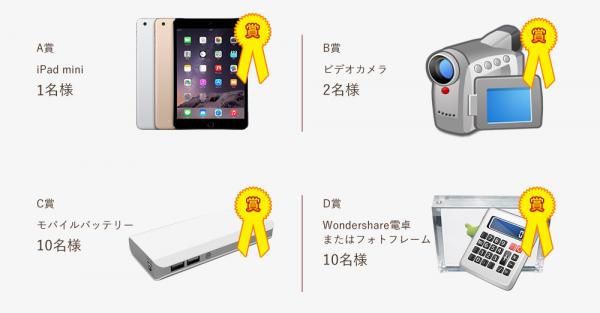 ◆あと3日!豪華賞品抽選+全商品最大40%オフ!◆年末年始お買い得キャンペーン期間Wondershare社製品をお買い上げの方にiPad miniや話題のビデオカメラなどの豪華賞品があたります!