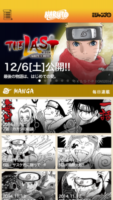 NARUTO-ナルト-が連載完結した2014年11月10日から、毎日1話(全700話)マンガを無料配信し、毎週2話(全220話)アニメを無料放送しているアプリ。1月19日(月)より、小説とイラストの無料配信も開始。