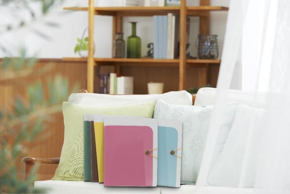 カラーリングはお部屋のカラーやデザインにこだわりのある方にもご満足いただける、インテリアに調和するスモーキーでナチュラルなカラー。フロントポケットはコットンホワイト、チャコールグレー、ウォルナットブラウン、ポタリーブルー、アクアブルー、プランツグリーン、ペアーイエロー、ダリアピンクの8色が揃っています。ご家庭で本棚やシェルフに置いて、毎日の生活空間の中にも心地よく溶け込む洗練されたカラー&デザインです。