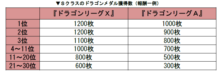 ランキングの順位に応じて、ドラゴンメダルを手に入れることができ、ドラゴンメダル