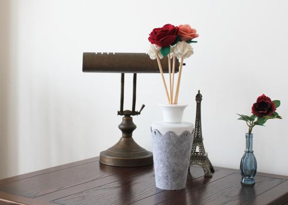 フェルト生地を使ったリードディフューザーはシンプルでいながらもお部屋を彩るNordicがコンセプト。