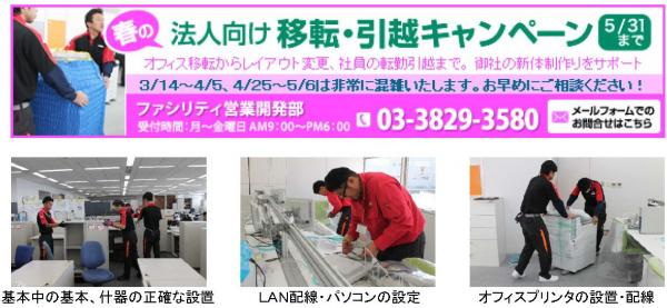 SBSグループにおいて物流事業の中核を担うSBSロジコム株式会社は、春の異動シーズンに向けて、オフィス移転や社員の転勤引越を管理される総務部門などのご担当者の皆様をサポートし、新体制作りを応援する「法人向け移転・引越キャンペーン」を1月から5月まで実施いたします。