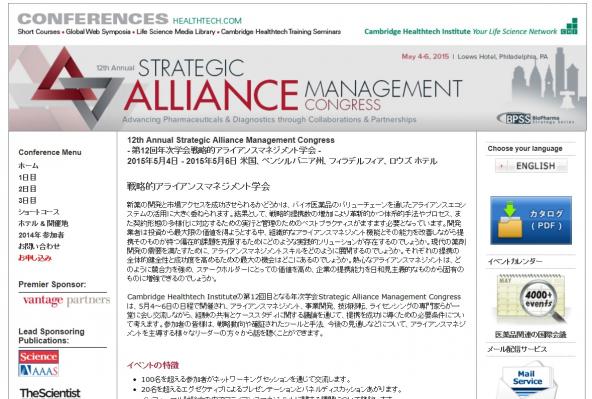Cambridge Healthtech Instituteの第12回目となる年次学会Strategic Alliance Management Congressは、5月4~6日の日程で開催され、アライアンスマネジメント、事業開発、技術移転、ライセンシングの専門家らが一堂に会し交流しながら、経験の共有とケーススタディに関する議論を通じて、提携を成功に導くための必要条件について考えます。参加者の皆様は、戦略動向や確証されたツールと手法、今後の見通しなどについて、アライアンスマネジメントを主導する様々なリーダーの方々から話を聴くことができます。
