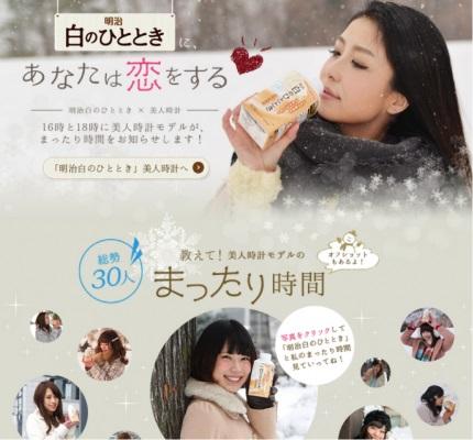 美人時計、美人天気などを手がけるBIJIN&Co.は、“明治白のひととき”とともに過ごす、ゆったりまったりとした時間をより楽しんで頂く為のスペシャルサイト(※1)を2015年1月23日(金)公開いたしました。