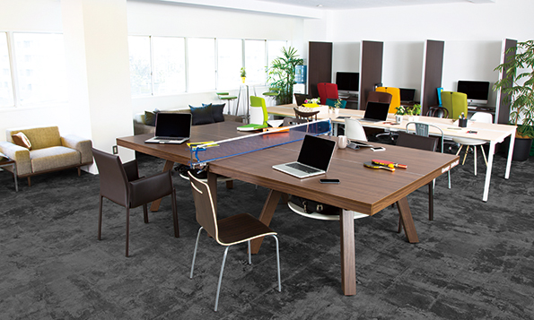 オフィス環境やワークスタイルの変化に伴い、職場でのコミュニケーションスタイルも進化。仕事の質を高めるだけでなく、人と人が自然に集まり、コミュニケーションを活性化させたり、リフレッシュを図ることによって、一層クリエイティブな仕事場が生まれます。そんな空間を実現するために、プラスが注目したのは今や競技人口は30万人(団体加盟者人数)、日本人選手の活躍もあって近年注目度急上昇の「卓球」です。