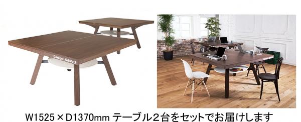もちろん卓球台そのままではなく、あくまでオフィス用テーブル、テーブルデスクとしての品質にこだわりました。使い勝手を考慮し、真ん中で分かれる2分割タイプ。インテリアになじむ木質テイストで、会議やフリーアドレステーブルとしてご使用いただけます。カラーバリエーションは、濃木と白木の2色。価格(税抜)は2台セットで、本体202,778円(税込219,000円)、組立費5,000円です。