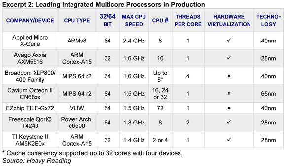 Integrated Multicore Processors for the Software-Defined Network: A Heavy Reading Competitive Analysis surveys high-performance multicore processors for networking applications. The report also reviews the strategy, product mix and product architectures of 15 multicore processor, intellectual property (IP) and software vendors. As such, the report provides not only granular information on the components themselves - of interest to chip manufacturers and purchasers - but also insights into how the overall market for multicore processors is likely to develop - of interest to a wide audience, including carriers and investors.
