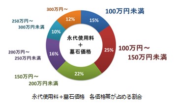 「永代使用料+墓石価格」200万円未満が約6割を占める