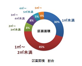 一番大きな割合を示しているのが1~2m2の45%、次いで1m2未満が30%で、トータルで75%という数値を示しました。