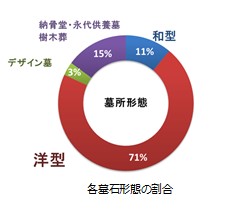 「墓所形態」洋型が70%と人気。納骨堂・永代供養墓・樹木葬の割合が伸びる
