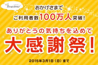 株式会社デファクトスタンダード(本社:東京都大田区、代表取締役社長:尾嶋崇遠)が運営する、ブランド品宅配買取サイト「ブランディア(http://brandear.jp/)」の累計利用者数が2015年1月26日をもって100万人を突破いたしました。
