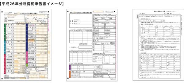 新バーション15.1.0では、平成26年分所得税申告書の様式変更による出力形式変更をシステム内部で自動処理するため、「ネットde会計(R)」「ネットde青色申告(R)」をご利用のお客様は、入力済みのデータをもとに最新税制に対応した申告書を手間なく作成できます。申告の際は、操作画面の決算メニューから「所得税申告書印刷」を選択し、わずか2クリックの操作で平成26年分様式の所得税申告書を作成できるほか、e-Taxにも対応しています。