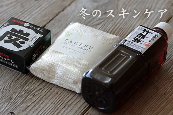 冬のお風呂3点セット(竹酢液500ml・炭石鹸・竹布ボディタオル)