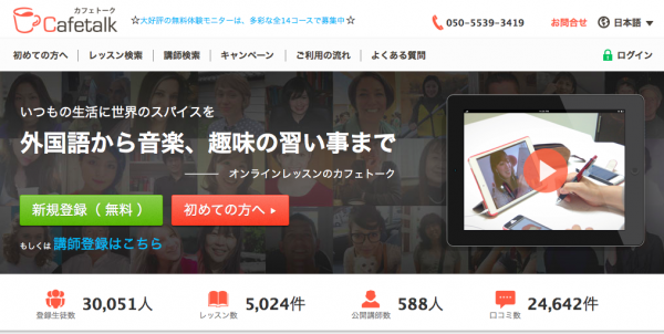 英会話はじめ韓国語・フランス語・スペイン語・日本語などの語学から、音楽や演劇などの芸術系、ヨガ等の趣味系のレッスンまで、多彩なレッスンを提供し続けるオンライン習い事サービスの「カフェトーク」。
