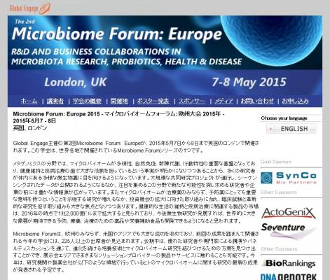 学会:「Microbiome Forum: Europe 2015 - マイクロバイオームフォーラム欧州大会 2015年」