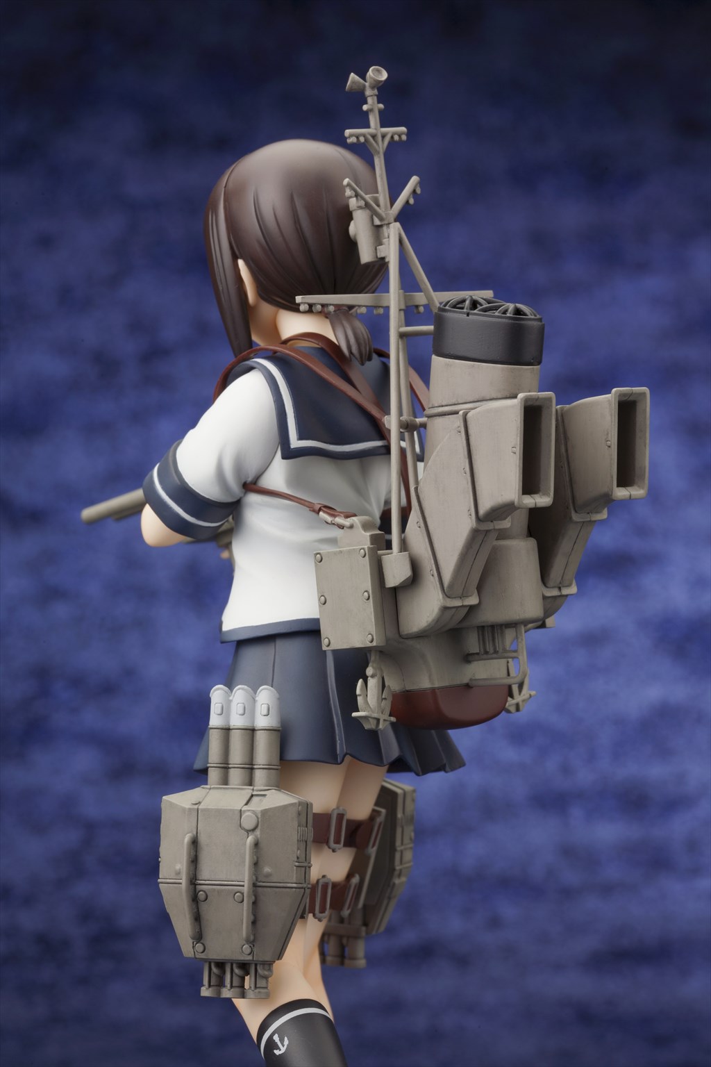 しばふ氏の描く「吹雪」を、イラストそのままのポージングで、少女らしい素朴な可愛らしさの中に、凛々しさのある表情で非常に魅力的に仕上げました。可愛らしい「吹雪」と、重厚感のある艤装部分のギャップをお楽しみいただける一品です。特に、主砲・三連装魚雷など艤装部分はディテールを細部まで丁寧に造形し、駆逐艦吹雪型のネームシップの名に恥じない、重厚感がありつつも美しい塗装表現を施しました。太ももの三連装魚雷は回転させることが可能なので、発射状態もお楽しみいただけます。