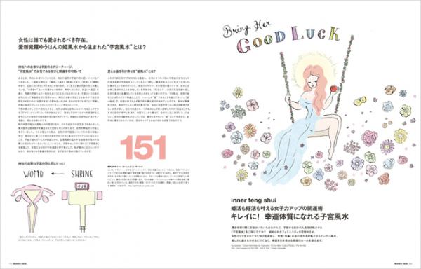 また、婚活・妊活を目指す女性にぜひ読んでいただきたい「子宮風水」も大特集。子宮から自分の人生を好転させる子宮風水は、秘められたフェミニニティを目覚めさせ、女性として生まれてきた悦びを享受し、恋愛・仕事・お金の流れを好転させるインナー風水。美しさに磨きをかけるだけでなく、幸運を引き寄せる美容のルールを教えます。