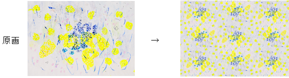 チャレンジドのアーワークによる作品は、このようにテキスタイルにアレンジされました。