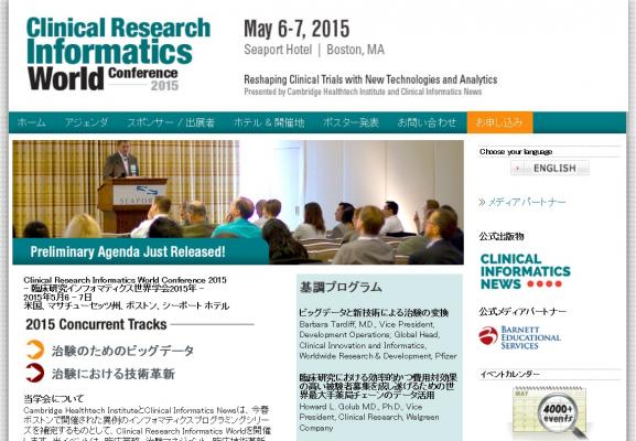 学会:「Clinical Research Informatics World Conference 2015-臨床研究インフォマティクス世界学会2015年」