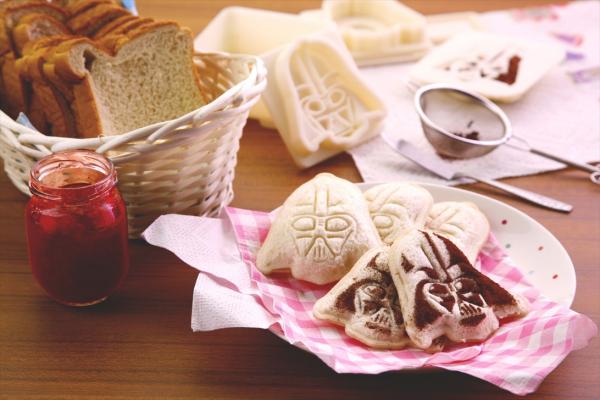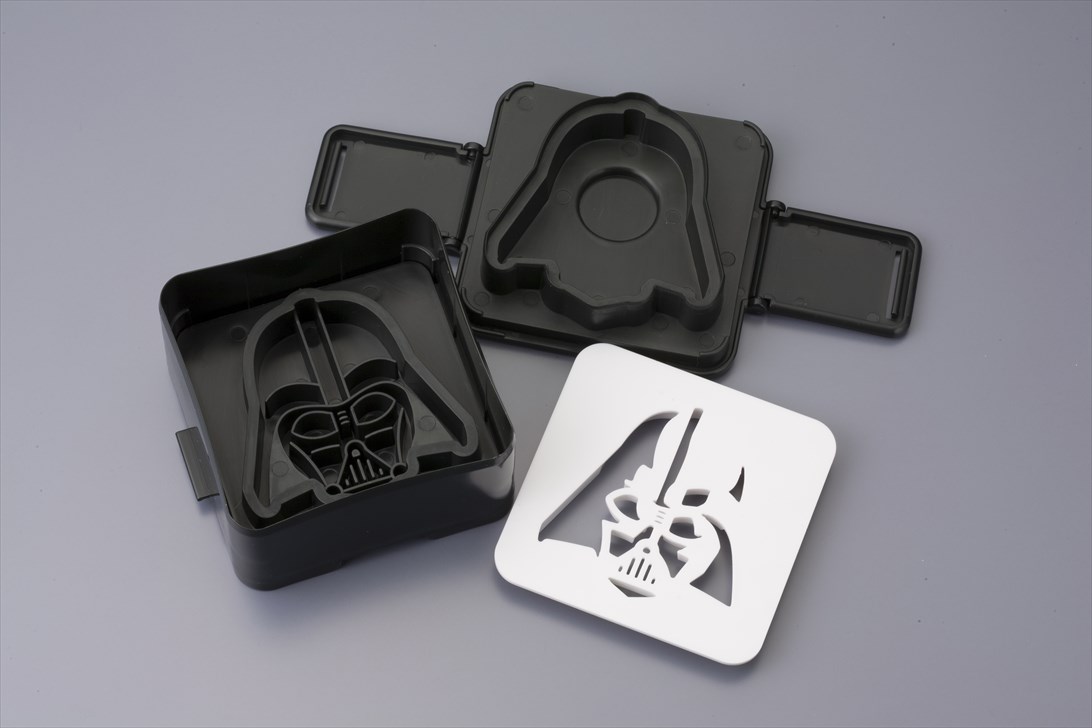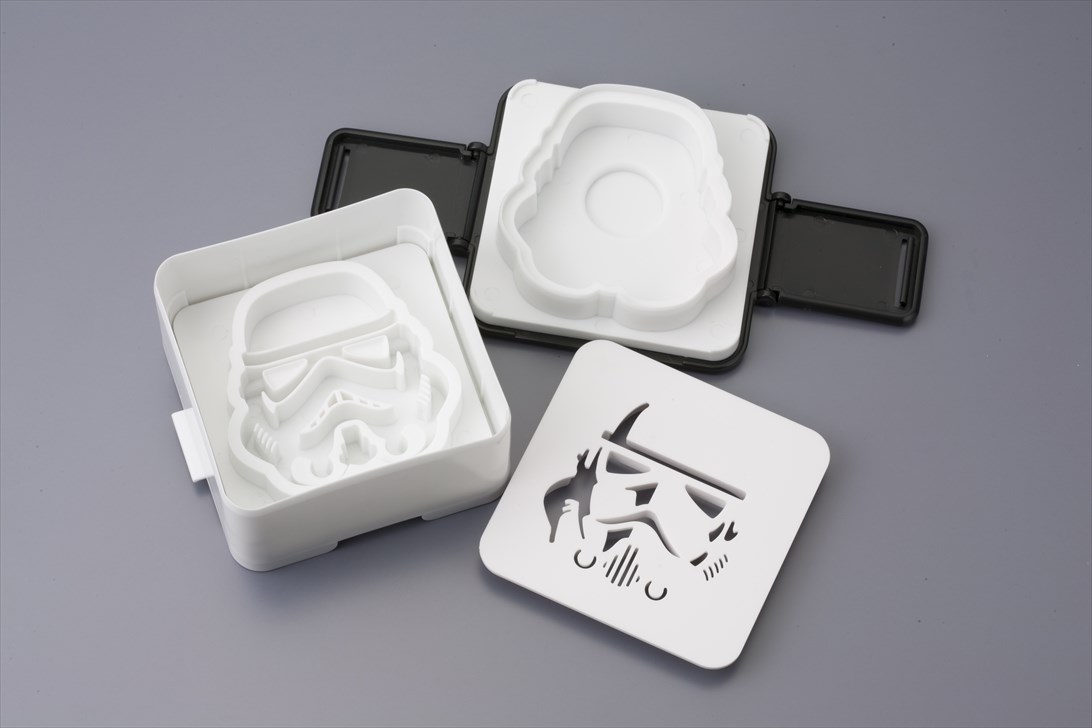サンドウィッチ型は「ダース・ベイダー」「ストームトルーパー」「R2-D2」の3種類になります。食パンに好きな具を挟んでカットするだけでスター・ウォーズキャラクターの袋状のサンドイッチが完成します。更に付属のステンシルパーツを使いココアなどを振り掛けることで、よりリアルな形が再現できます。親子で簡単に楽しく作ることができ、パーティーや行楽、お弁当の彩りにオススメです。