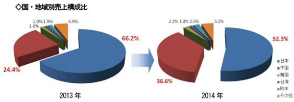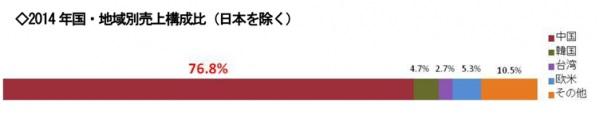 日本を除いた全ての国・地域の売上構成比を比較すると、実に全体の76.8%が中国となっており、その購買力の高さがうかがえます。