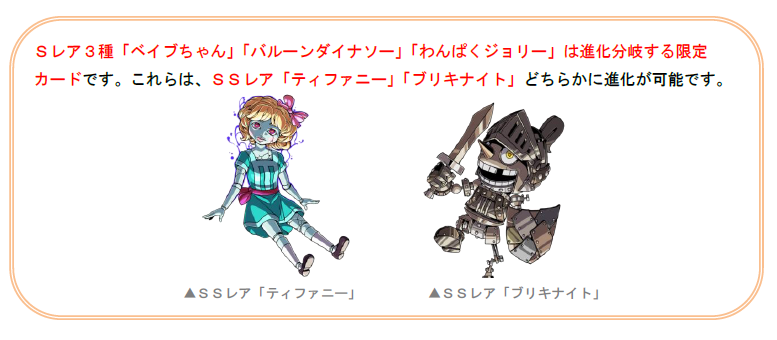 限定カードです。これらは、SSレア「ティファニー」「ブリキナイト」どちらかに進化が可能です。