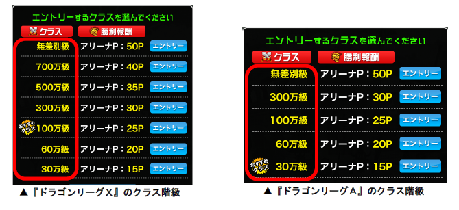 ※クラスの階級は『ドラゴンリーグX』と『ドラゴンリーグA』で異なります。