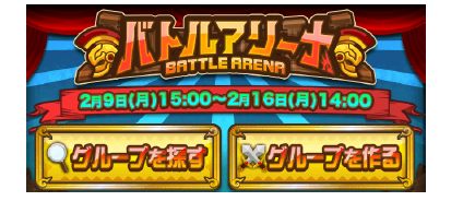 グループは、バトルアリーナのメニューにある「グループを探す」で、