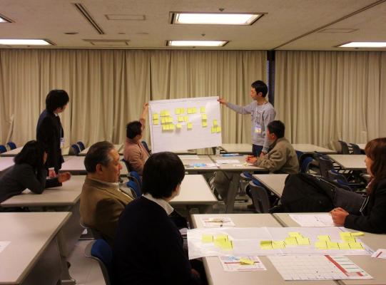 この研修会では、認知科学・知識科学の研究成果を基に開発された新しい危険予知トレーニング(KYT)手法を学びます。2014年度 から、危険予知活動の更なる普及を目指し、指導者養成プログラムの参加者募集を開始しました。1日の受講で、危険予知トレーニング指導者の基礎的な資格と なる「多職種連携危険予知管理者レベル1資格」を取得できます。看護師、介護士、病院や介護事業のリーダー層を中心に、全国から参加者が集まっています。