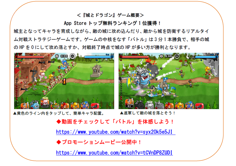 ム対戦ストラテジーゲームです。ゲームの中核をなす「バトル」は3 分1 本勝負で、相手の城