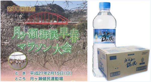 ミネラルウォーターの製造販売を行う、永伸商事株式会社(本社:兵庫県尼崎市、代表:山本伸次)では、2015年2月15日(日)開催の「月ヶ瀬梅渓早春マラソン大会」に協賛いたします。