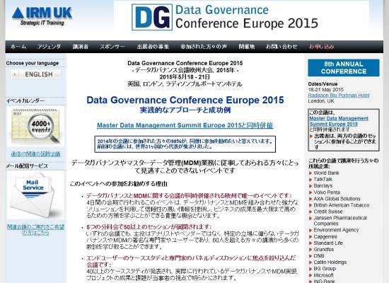 会議:「Data Governance Conference Europe 2015-データガバナンス会議欧州大会 2015年」
