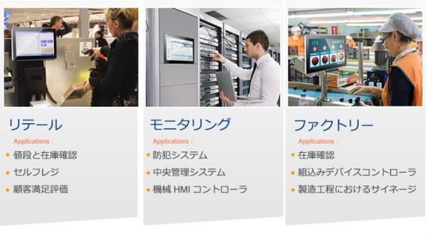 - Windows(R) Embedded Standard 7, Windows(R) Embedded Standard 8 及び Embedded Linux 3.0 搭載可能
